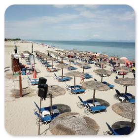 "Ξυπόλητοι στην άμμο θα περπατήσετε και θα αφεθείτε στη μαγεία της ατελείωτης ακτής μας, απολαμβάνοντας τον Ήλιο, την Θάλασσα και το όμορφο Ηλιοβασίλεμα."